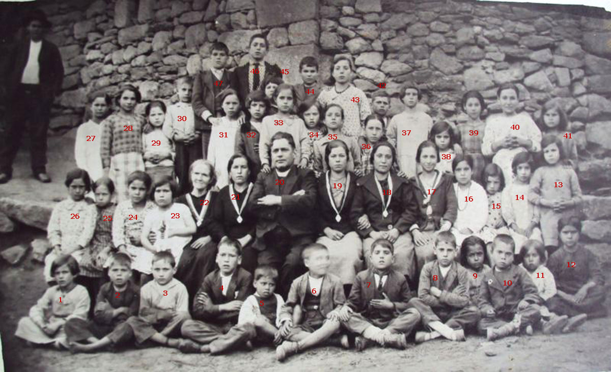 Aqui vai o meu parecer, depois de perguntar aos mais velhos, porque na data da foto ainda me faltavam muitos anos para nascer. 15-Sra Fabia 5-Mãe da Sra Fabia 8-Sr. Chico Fabia 14-Irmã da Sra Fábia - Isilda 4 - Sr César Talhote 11-Sra Maria Teresa 25-Filha do sr Arnaldo Pinto a Sra Maria de Fátima 35-SrHumberto Azevedo filho de Alberto Azevedo 36-Sr Anselmo, filho do sr Cipriano 37- Sr Zé Rodrigues 41- Sr Hernâni